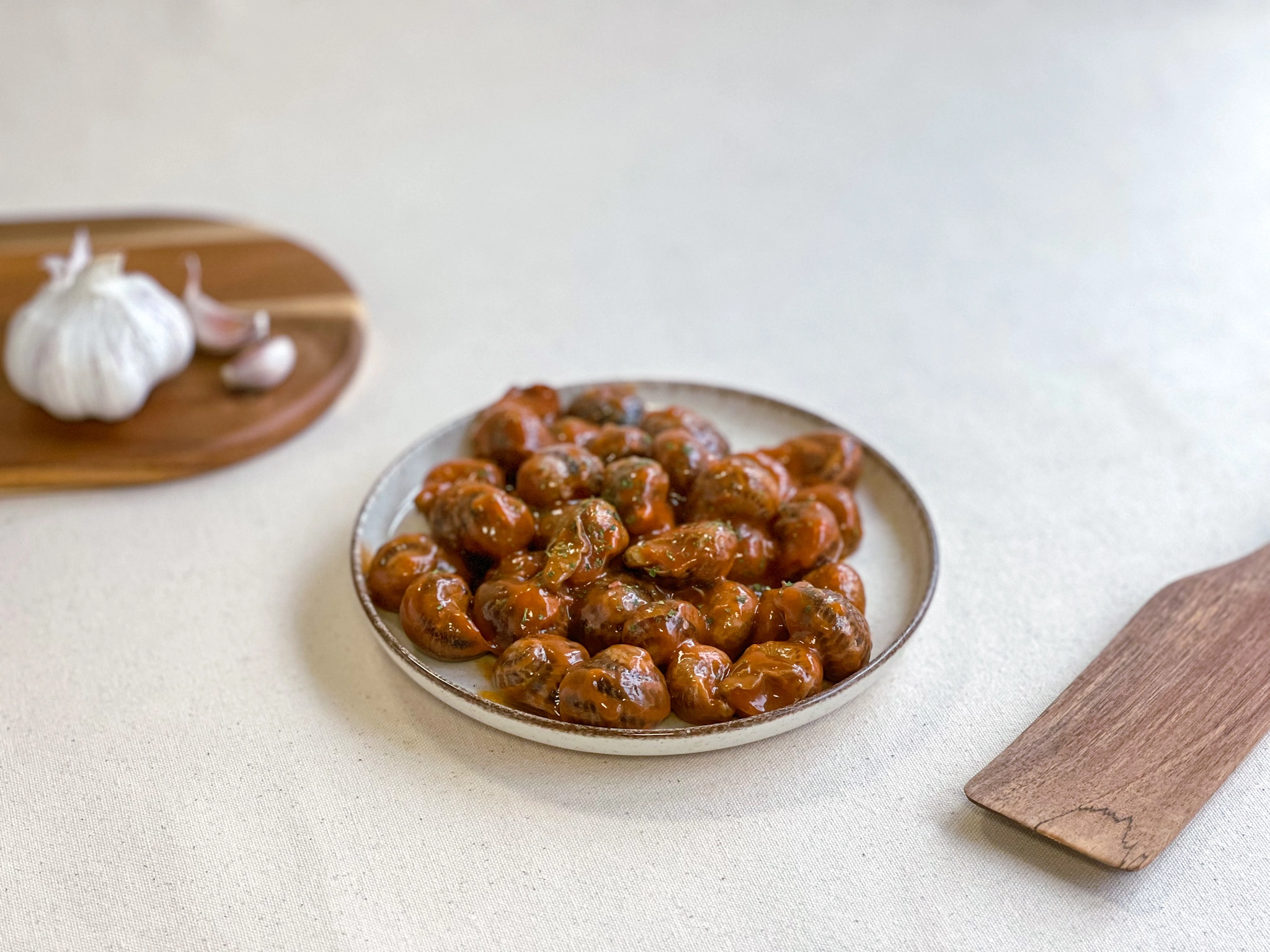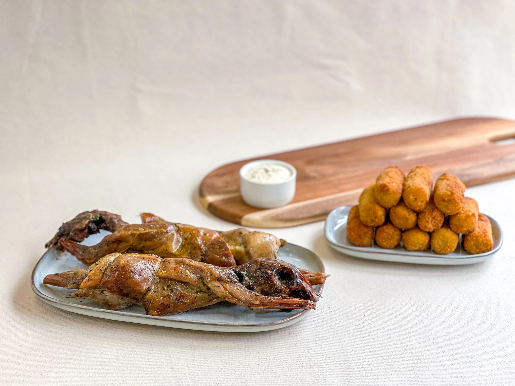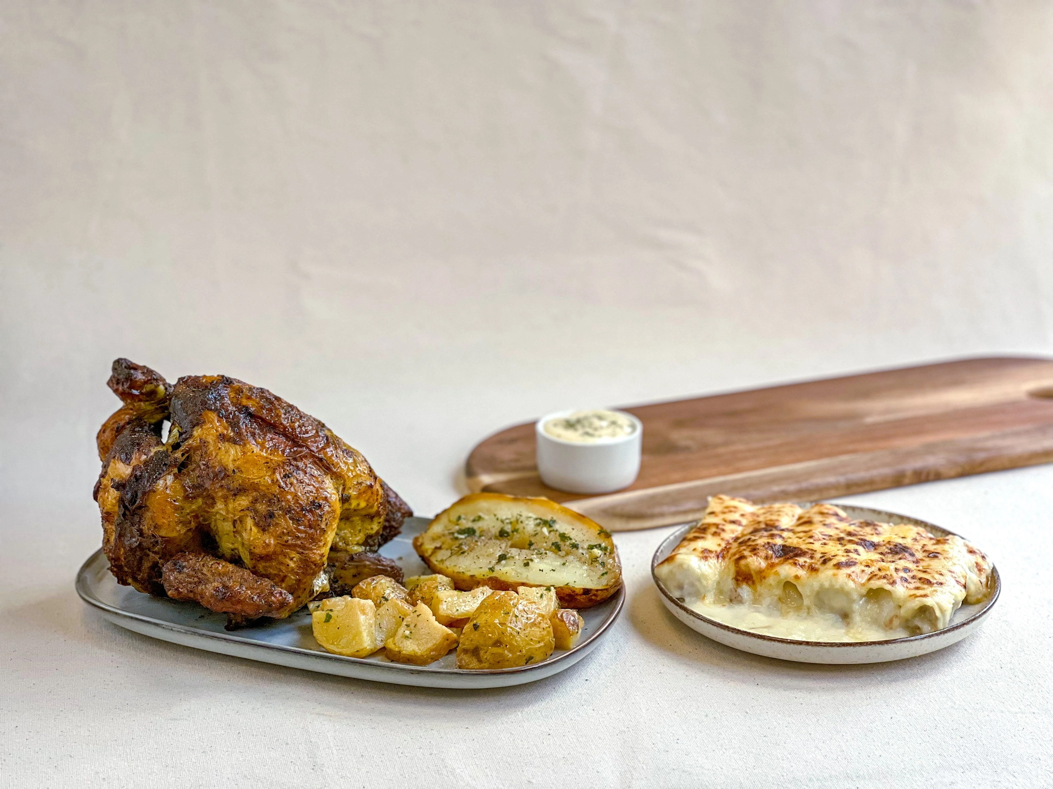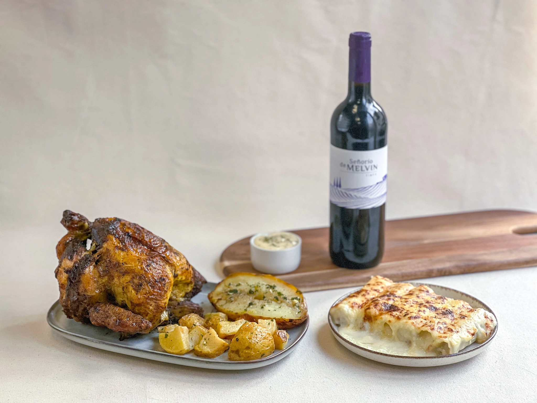 Menu 5 Un pollo con 12 canelones, patatas bravas o al caliu y botella de vino o refresco 2L