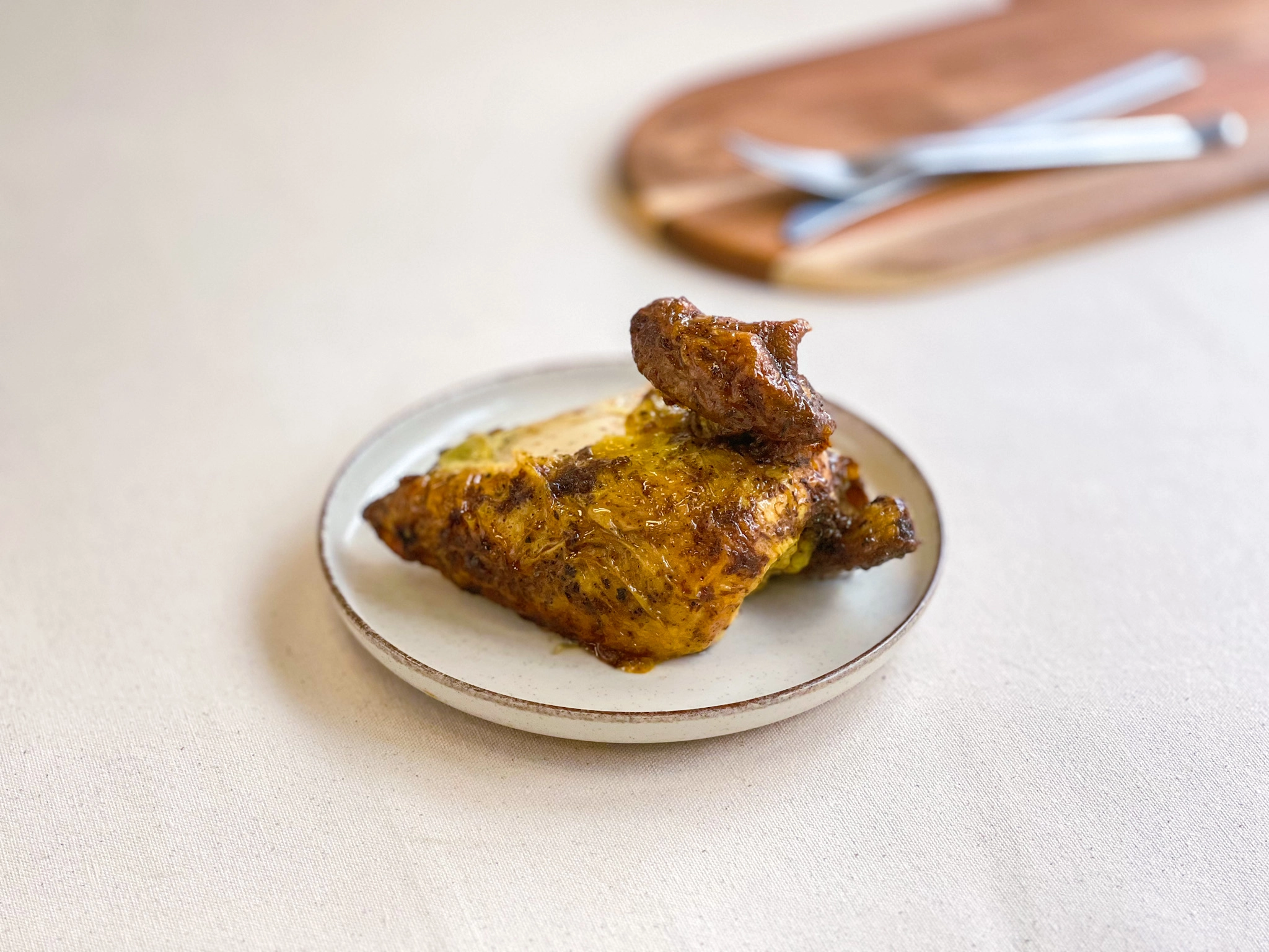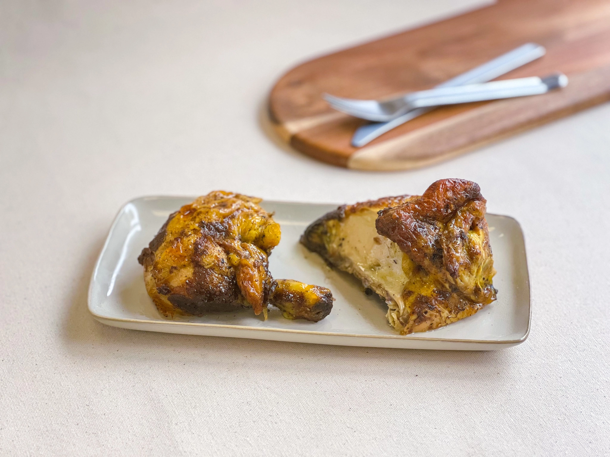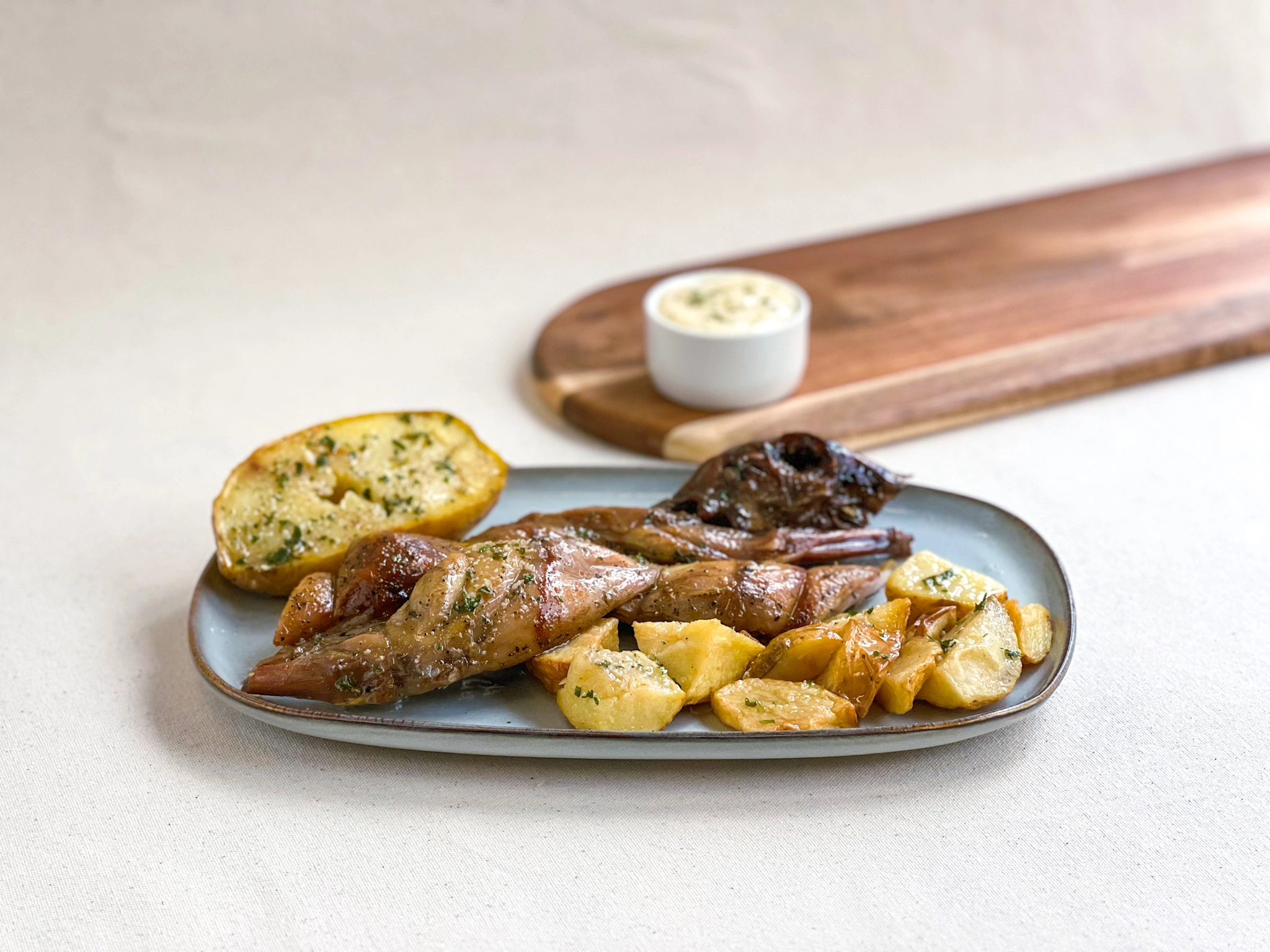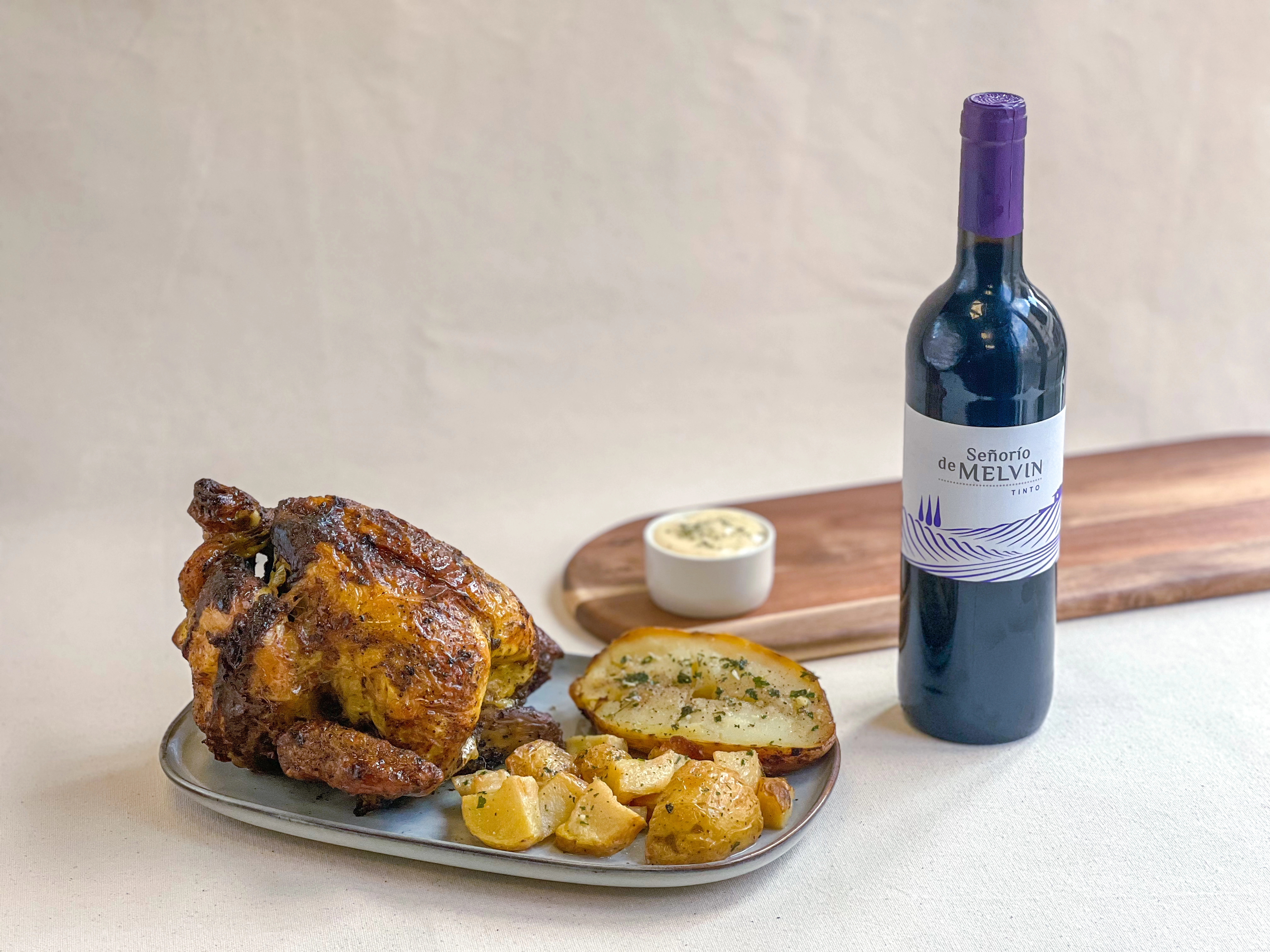 Menu 2 Un pollo con patatas bravas o al caliu y botella de vino o refresco 2L