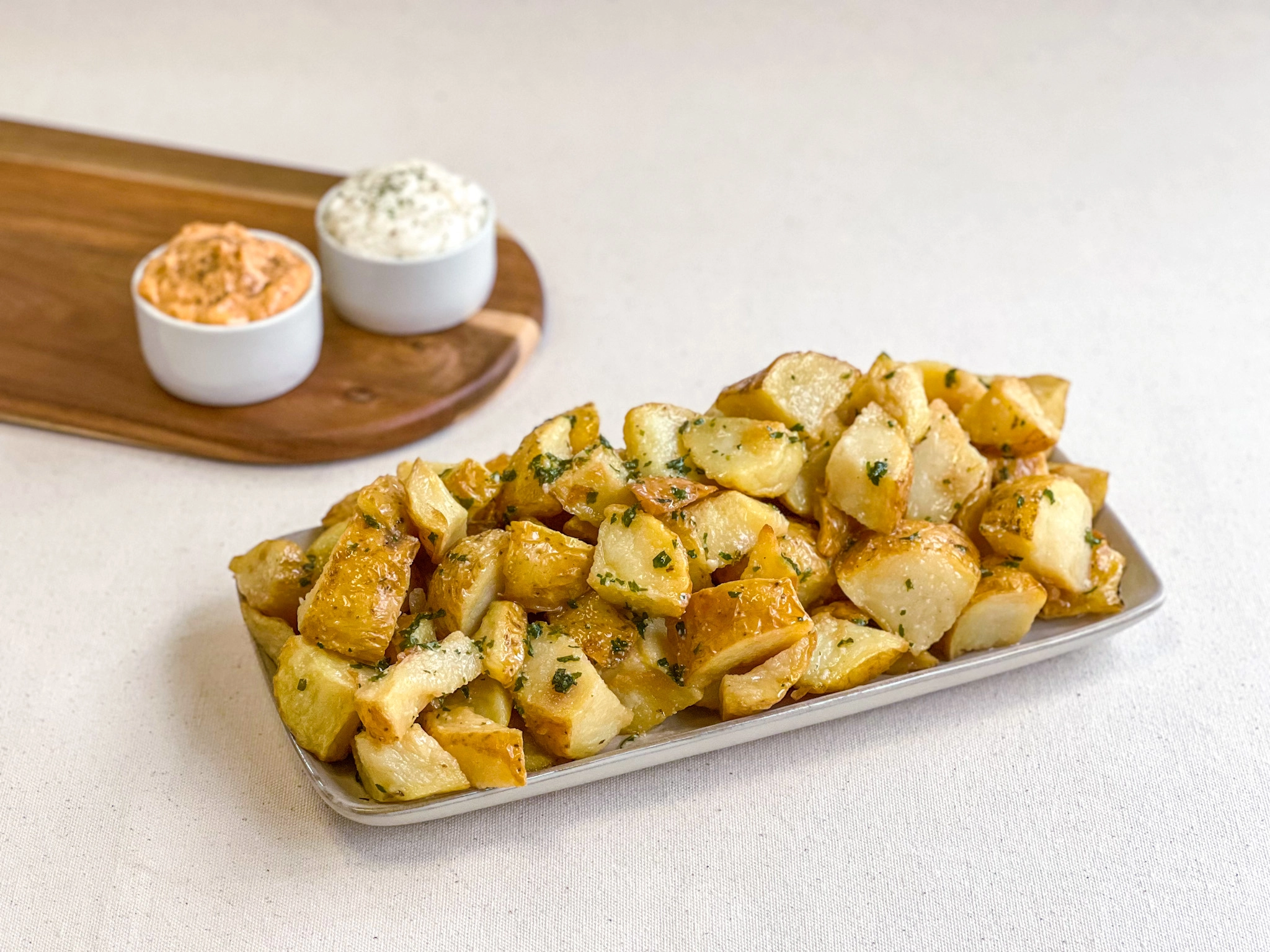 Menu 3 Un pollo con patatas bravas o al caliu y 6 canelones